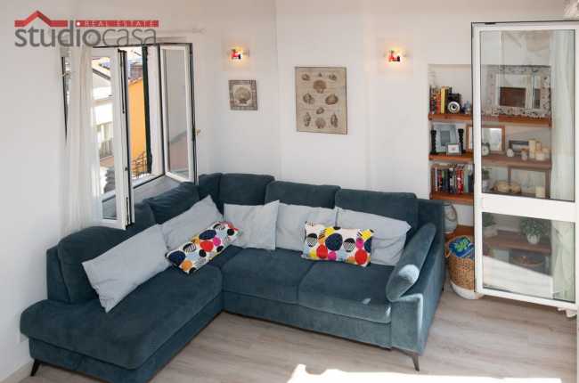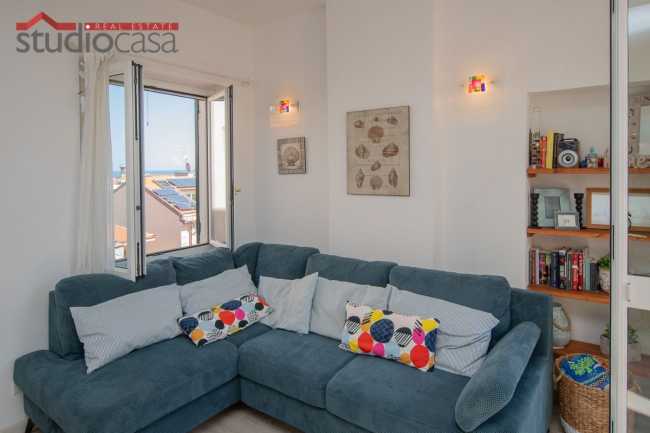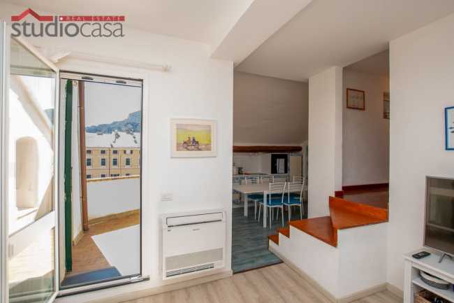 Finale Ligure - zona Marina: nella splendida cornice di Piazza Vittorio Emanuele II, proponiamo un ampio appartamento di circa 100 mq., posto all'ultimo piano di una palazzina d'epoca, in ottime condizioni, arredato, disposto su 2 livelli e composto da ingresso su sala con accesso a terrazzo vivibile affacciato direttamente sulla Piazza, cucina con annesso locale di servizio, ampia camera con cabina armadi, soppalco con ulteriore zona notte; al piano superiore, con ingresso indipendente, camera matrimoniale, dalla quale anche da coricati si puo godere di una meravigliosa vista mare, con annesso bagno di servizio, ideale per ospiti. Possibilita comodo box auto. Classe Energetica D-EP 113,40